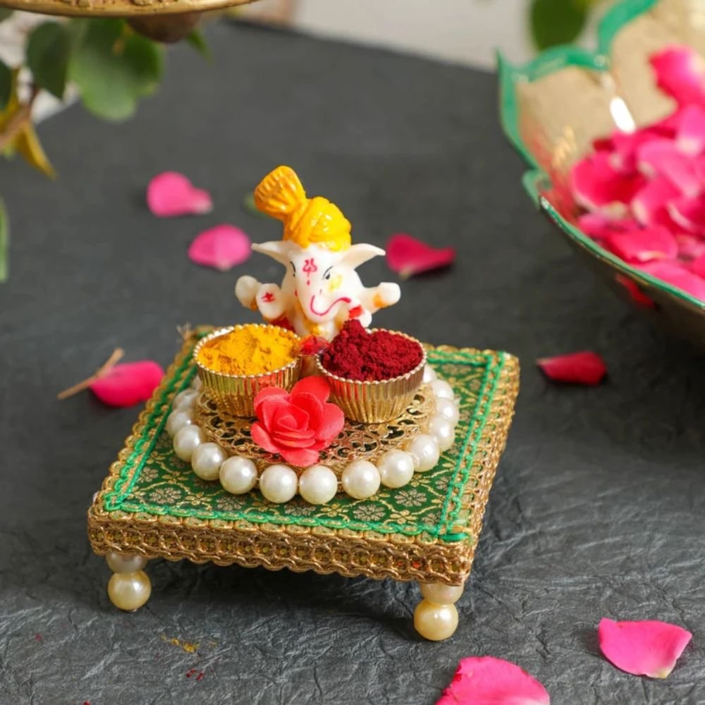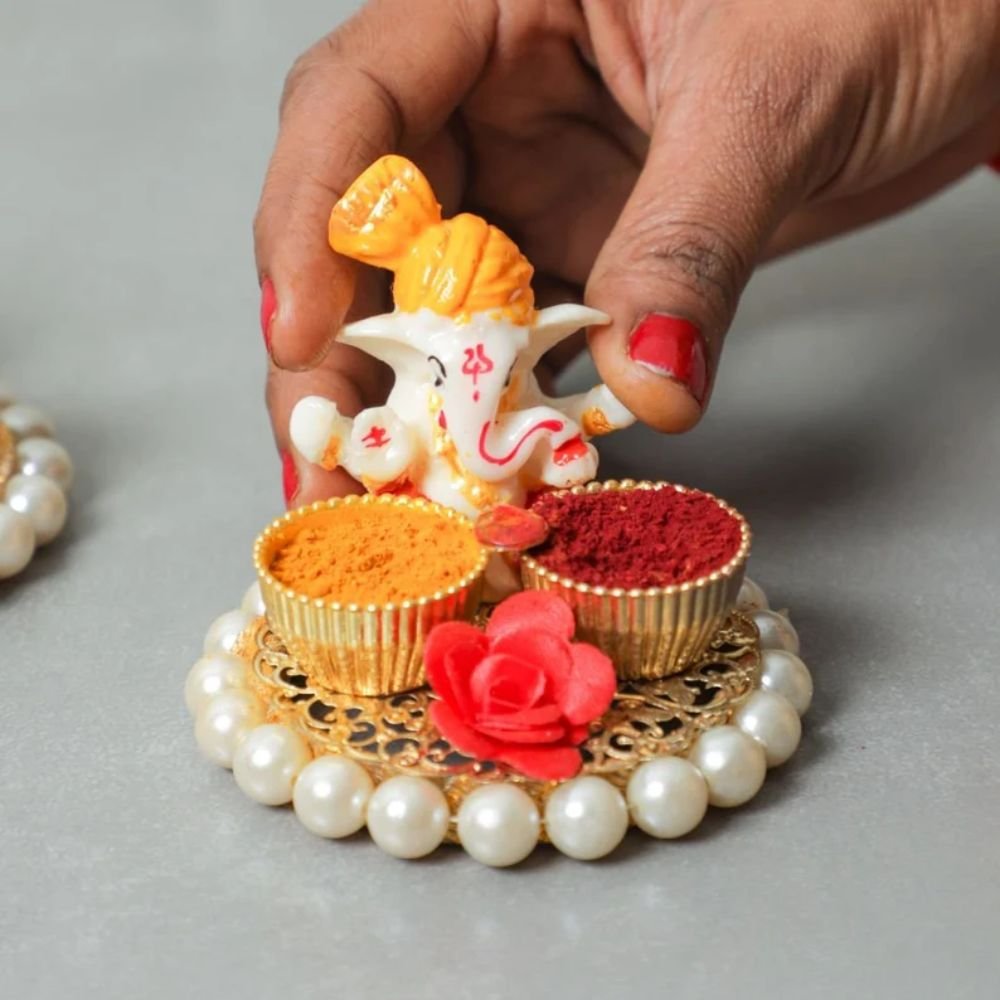 Design: Lord Ganesha with twin bowls for haldi & kumkum