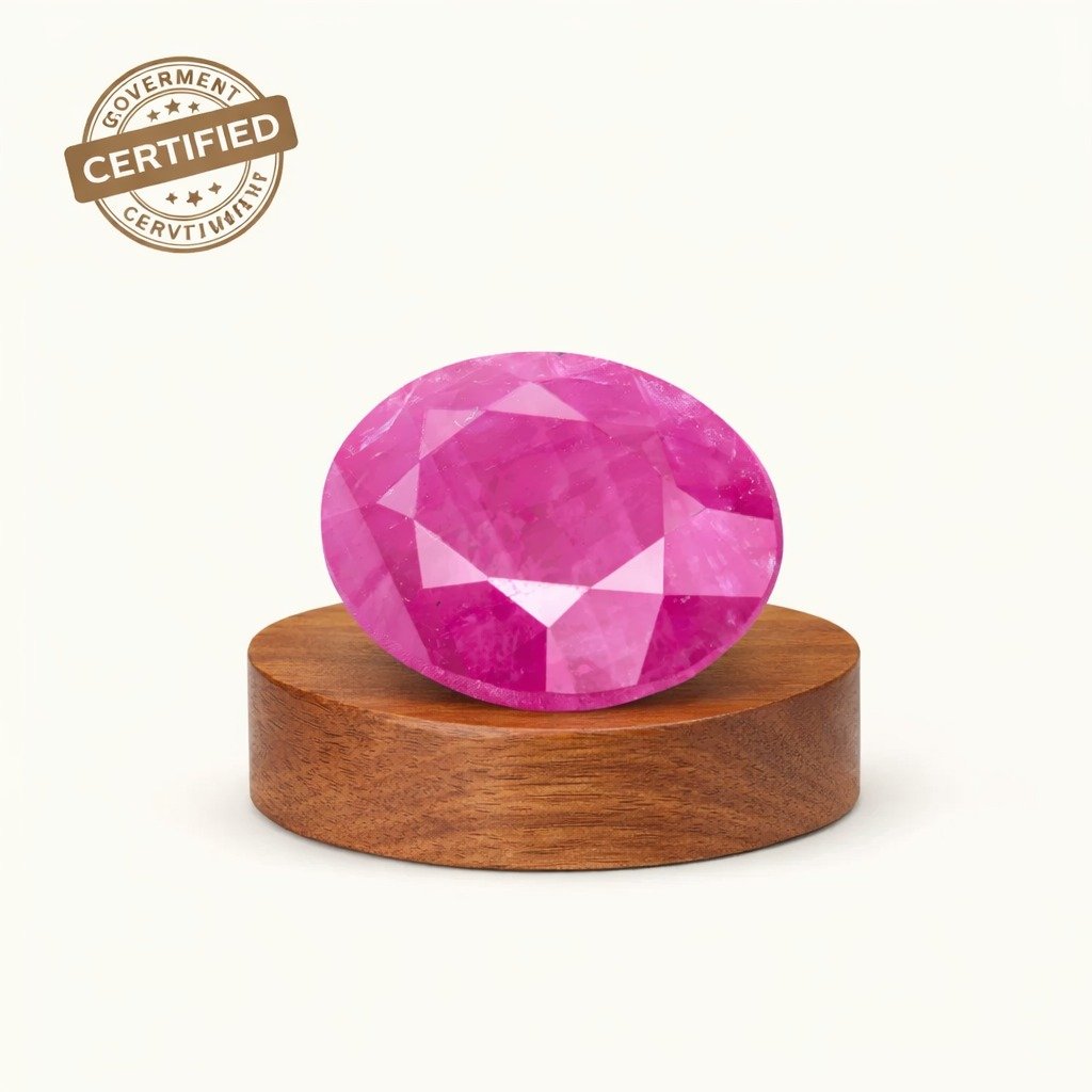 Ruby (Manik) is recommended for individuals with a weak Sun in their horoscope, or those seeking confidence, leadership growth, and career success. Best worn after proper astrological consultation.