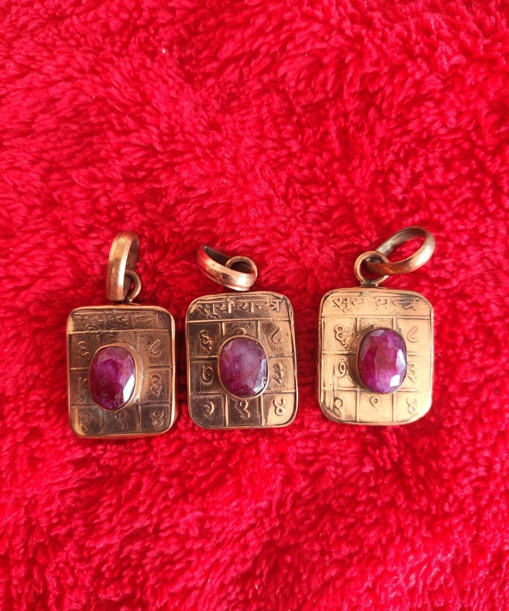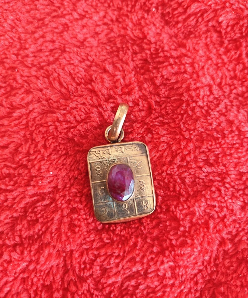 Ruby Stone Yantra PendantRuby Stone Surya Yantra Pendant – Natural Manik Locket