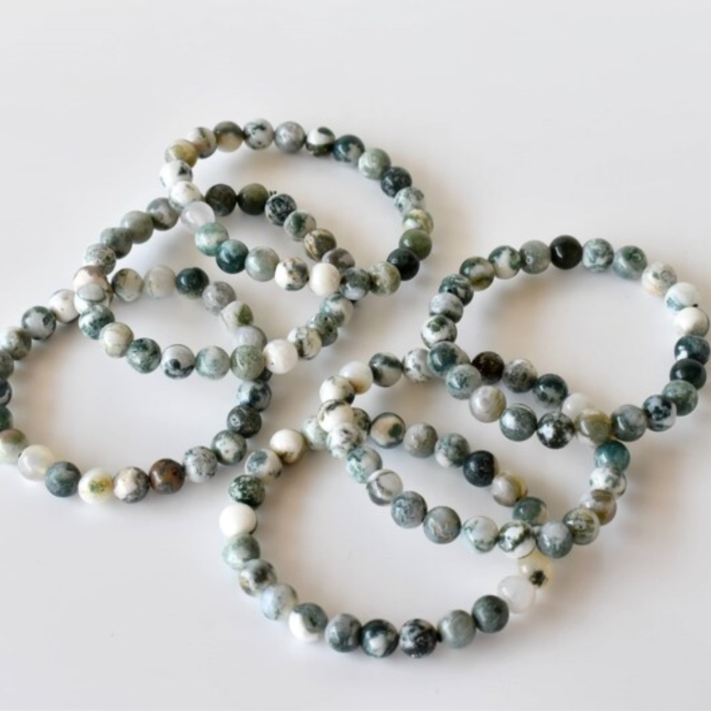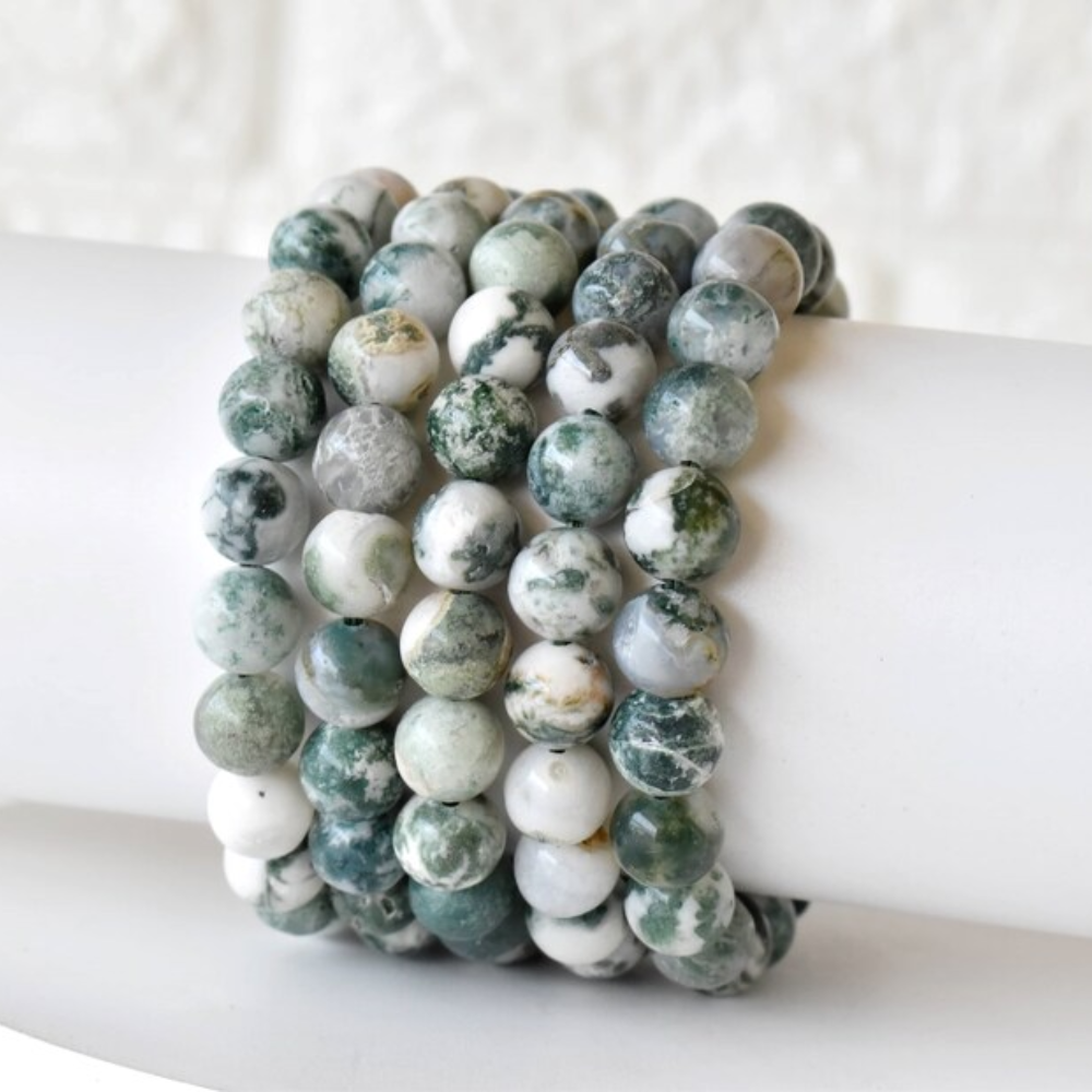 Experience grounding, balance, and natural harmony with our Tree Agate Bracelet, beautifully paired with a Matt Tree of Life Charm. Known for its soothing green patterns, Tree Agate symbolizes growth, stability, and inner peace. It is often worn to calm the mind, strengthen roots, and attract steady, nurturing energy into your life. Each bead is polished to a smooth finish, showcasing the stone’s earthy beauty and its connection to nature.
